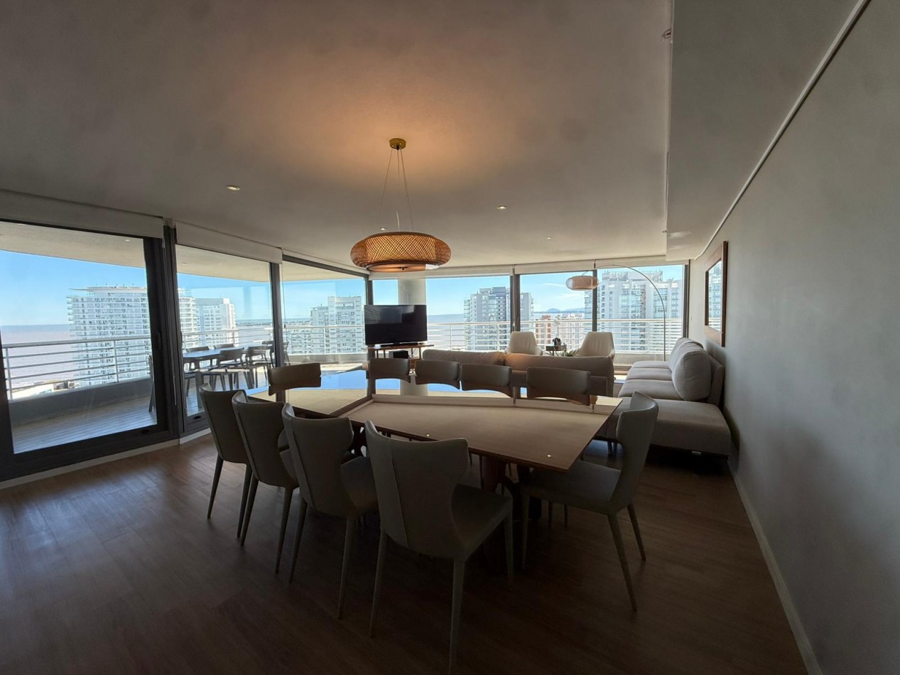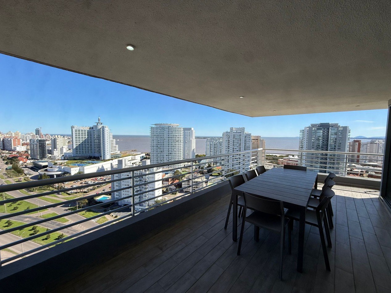 Apartamento en Alexander Collection, Playa Mansa. Cuenta con tres dormitorios en suite y dependencia de servicio. Amplio living comedor con salida a terraza y vista al mar. Cocina definida con equipamiento de primera línea. La unidad incluye garaje y acceso a los amenities del complejo, entre ellos piscina climatizada, gimnasio, sauna y servicio de mucama. Excelente ubicación y calidad constructiva.