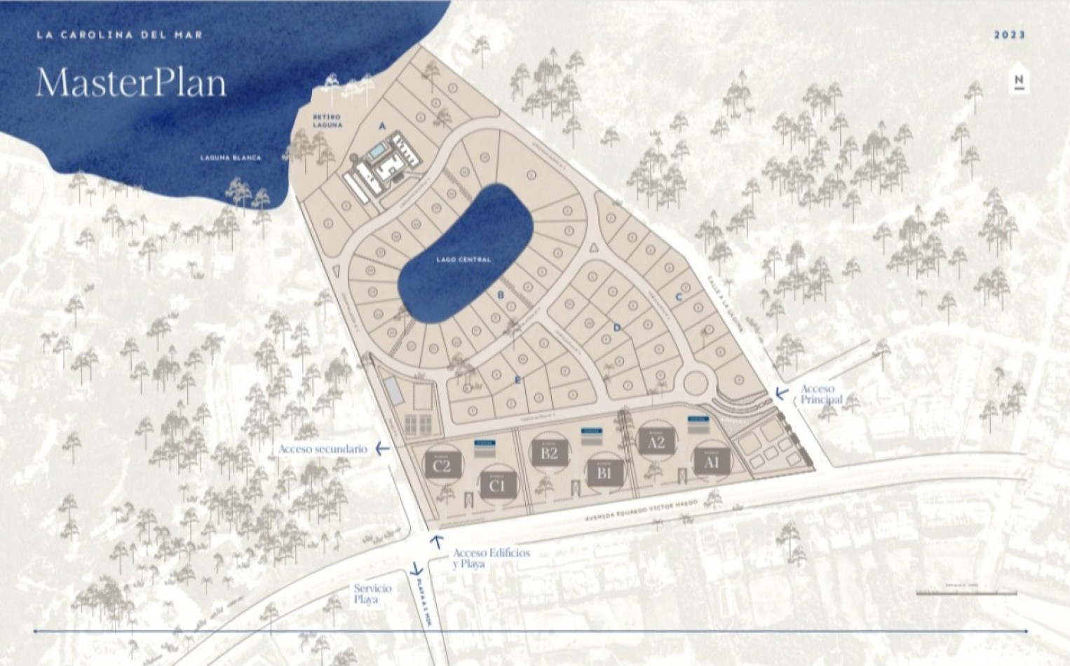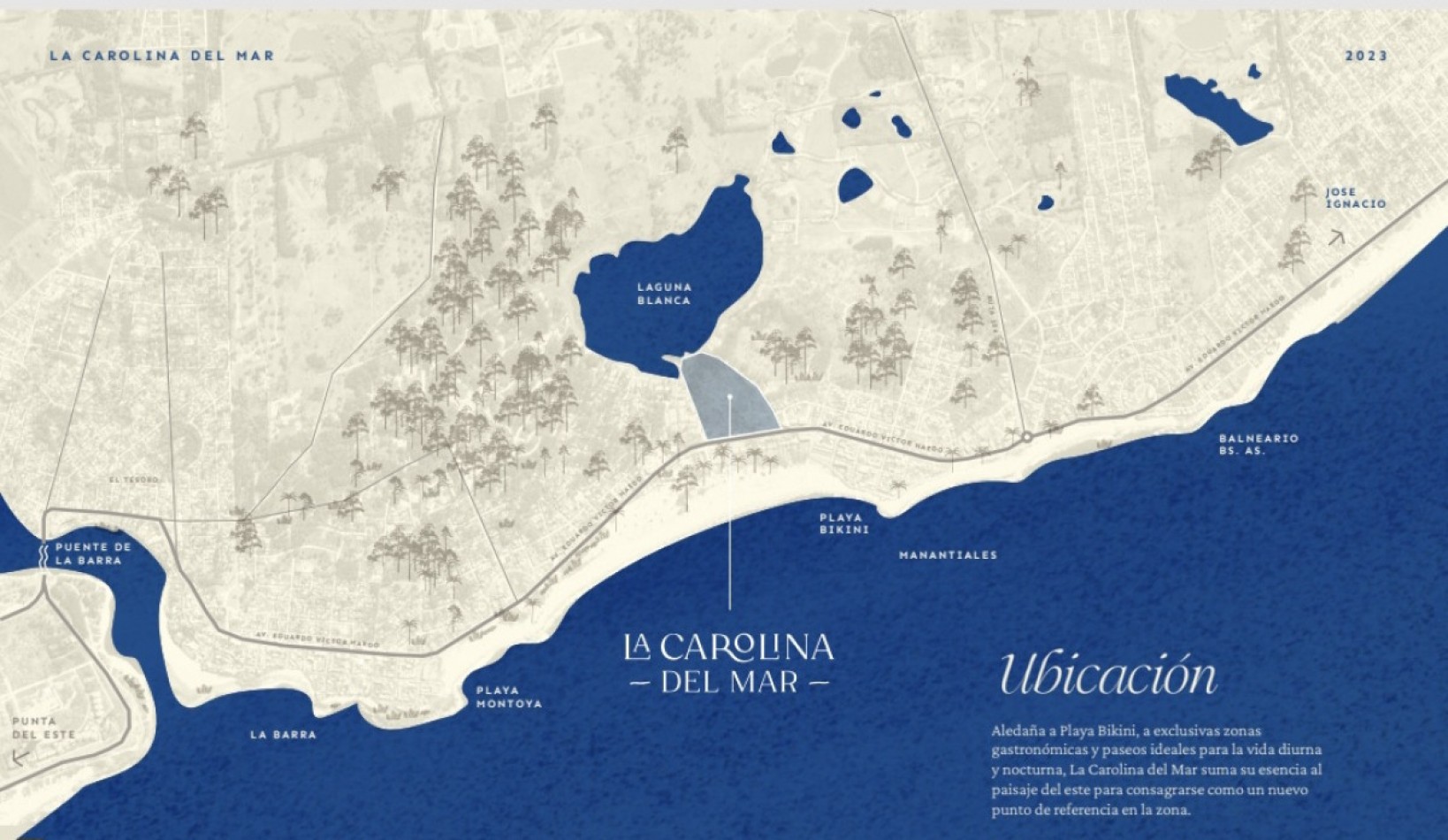 La Carolina del Mar es un complejo residencial emplazado en el bosque, entre la laguna y el océano. Integra un predio privado de edificios residenciales con sectores de amenidades y un barrio cerrado con lotes particulares.