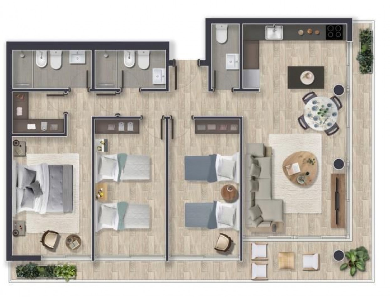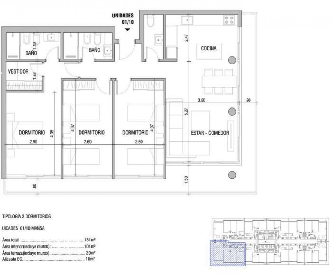 UNIDADES de 3 dormitorios, uno en suite.