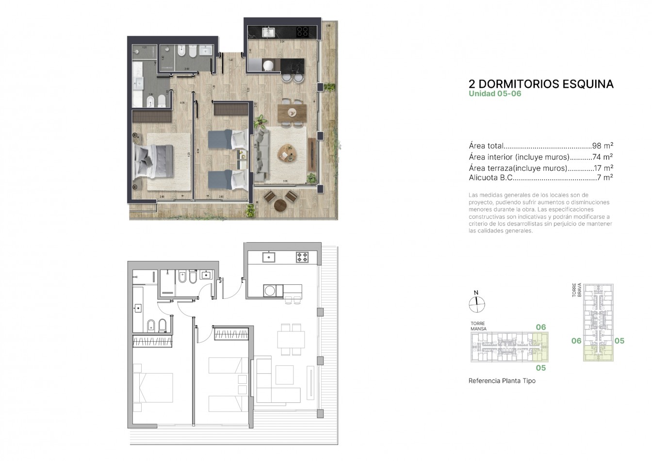 05 y 06 área interior 67 m2 + terraza 17 m2