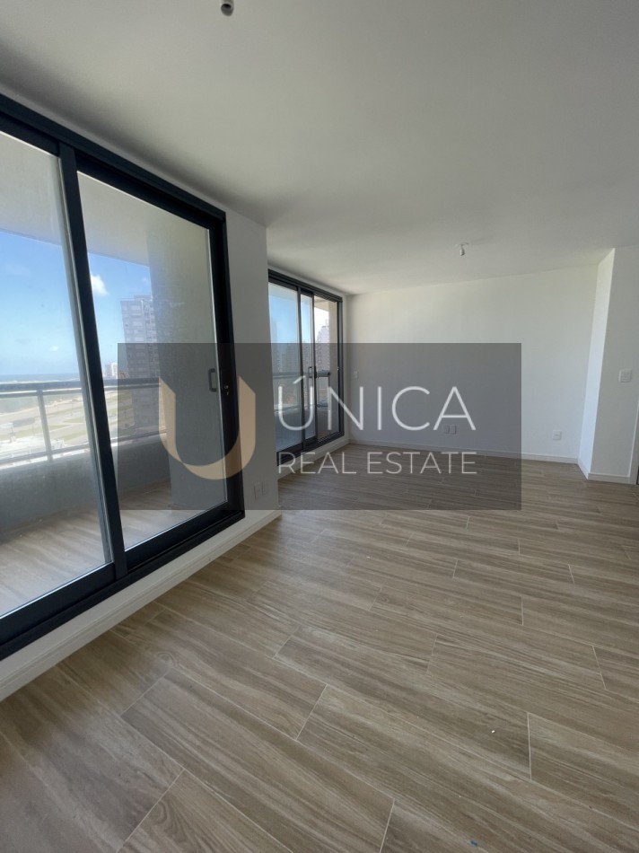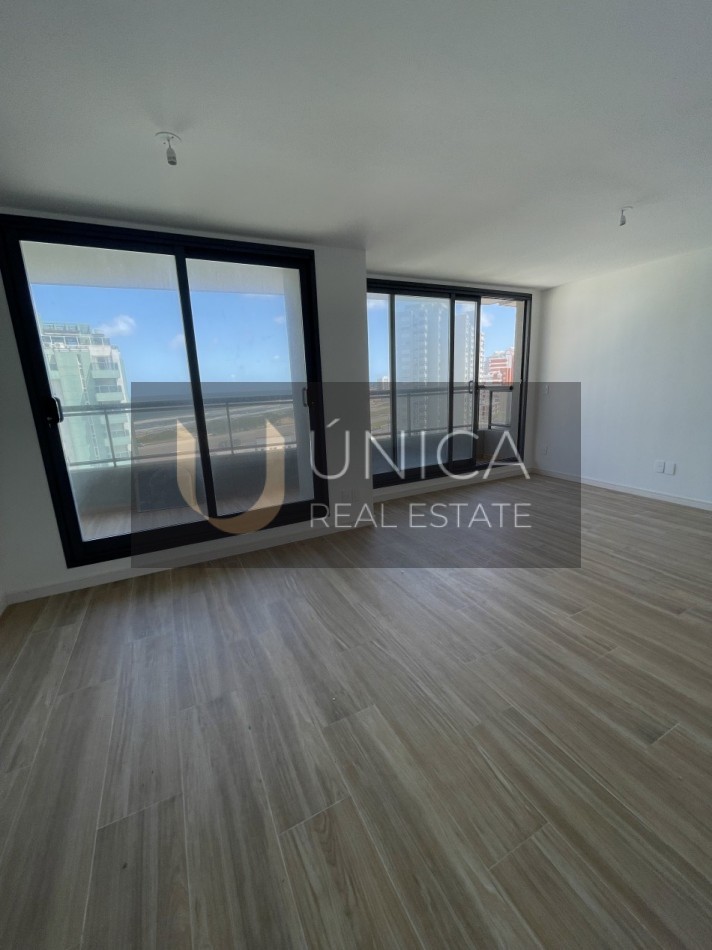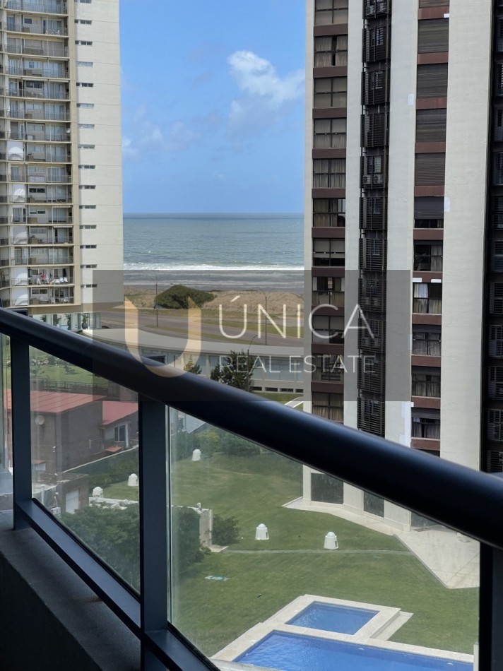 Living y comedor con balcòn aterrazado con vista a la playa.