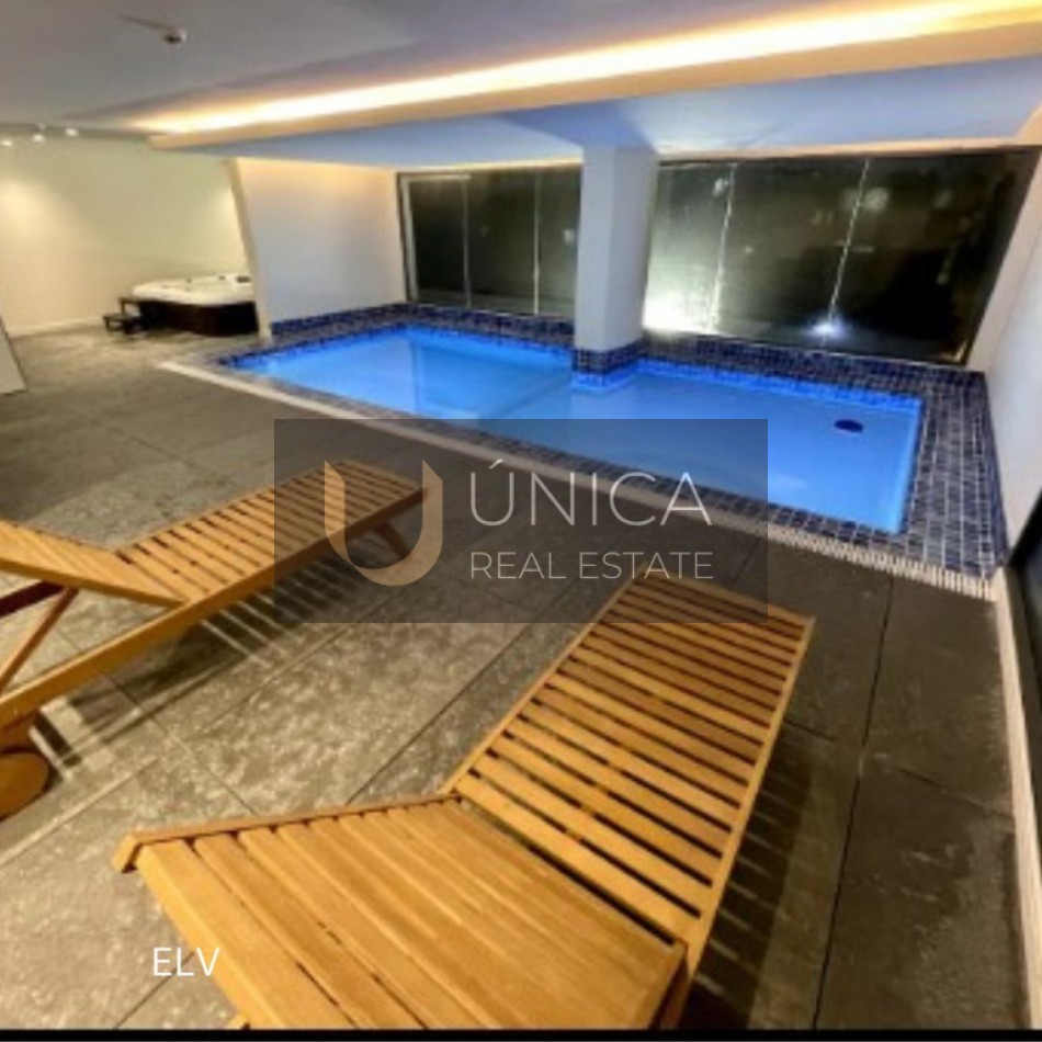 Gimnasio, parrillero, piscina cubierta con jacuzzi, piscina exterior, laundry.
