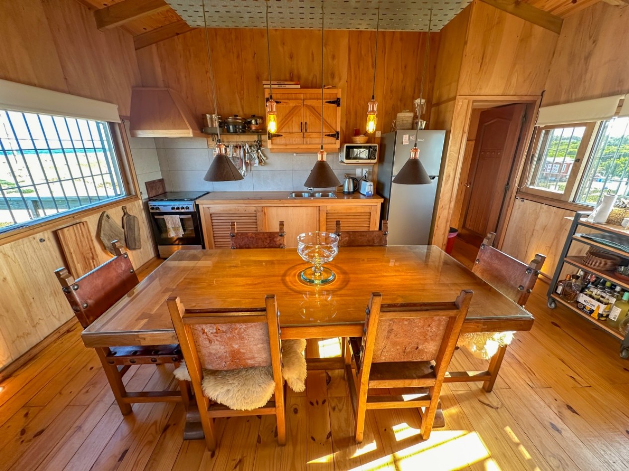 Casa construída en woodframe en Santa Mónica, sobre un lote 525m2 en un estilo simple y armonioso con la naturaleza. A metros de una playa agreste y muy cercana a la Laguna de José Ignacio.