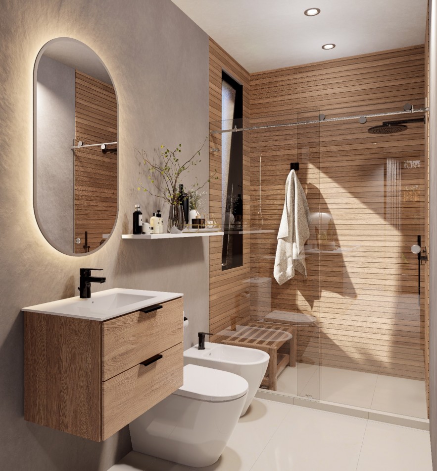 En planta alta, el dormitorio principal con baño en suite, dos dormitorios adicionales y un segundo baño completo.