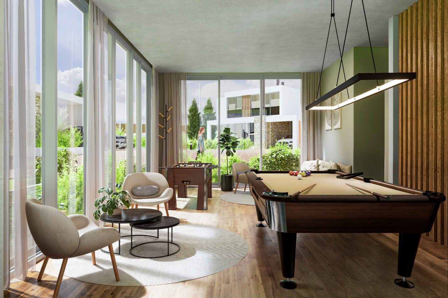 El proyecto ofrece espacios comunes diseñados para disfrutar: gimnasio y SUM rodeados de verde, ideales para relajarse, entrenar o compartir.