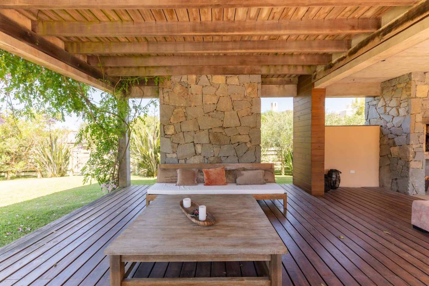 Gran galería con living comedor externo, parrilla deck con piscina climatizada por panel solar.