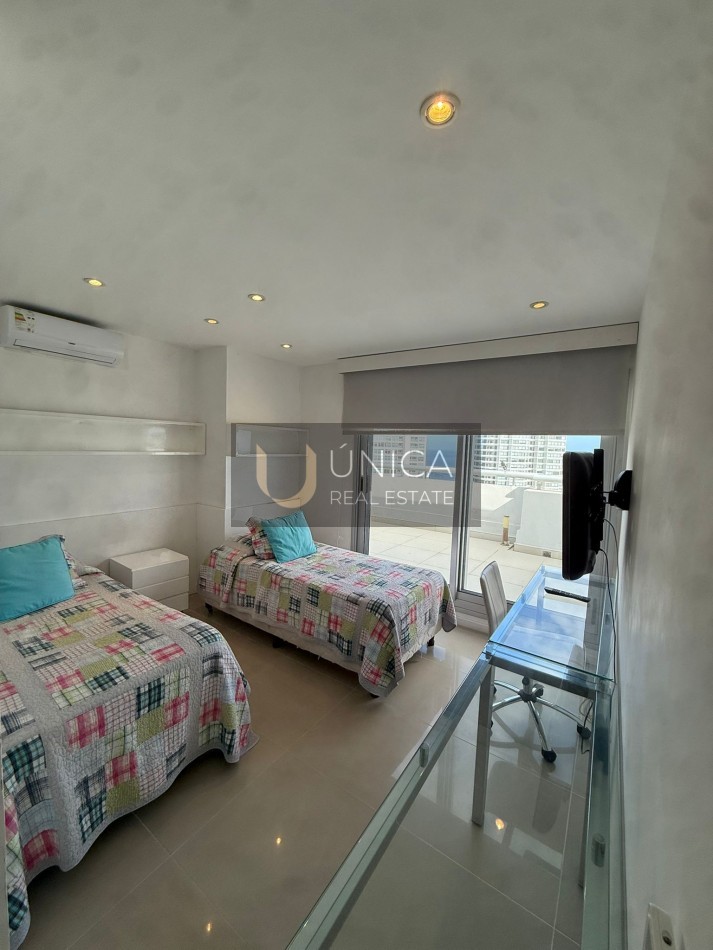 En uno de los sectores más cotizados de la Playa Brava, en el edificio Quartier del Mar, ofrecemos a la venta un penthouse de 3 suite más servicios, doble cochera, y amplias terrazas con vistas 360 grados.
