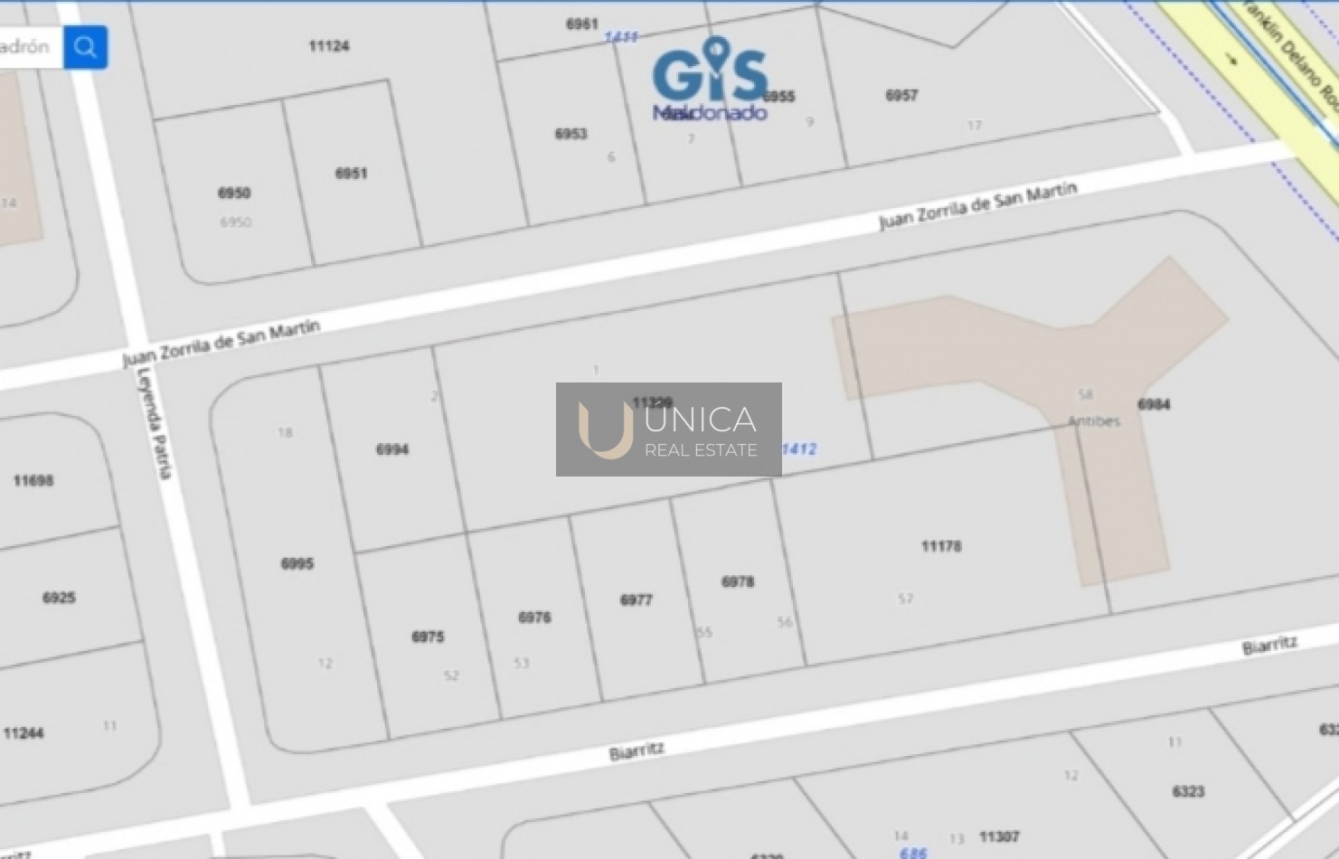 Terreno de 3728 m2 en Aidy Grill, Parada 6 Brava, a 300 metros del mar y 100 metros de Avenida Roosevelt.